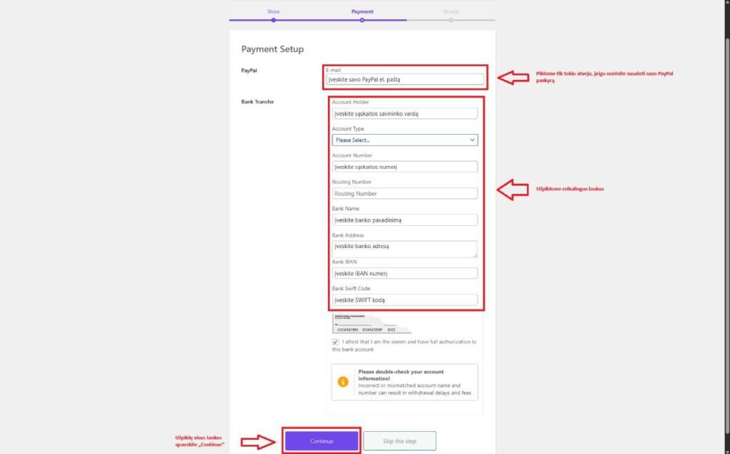 5 žingsnis. Nustatykite atsiskaitymo būdą (Payment Setup).