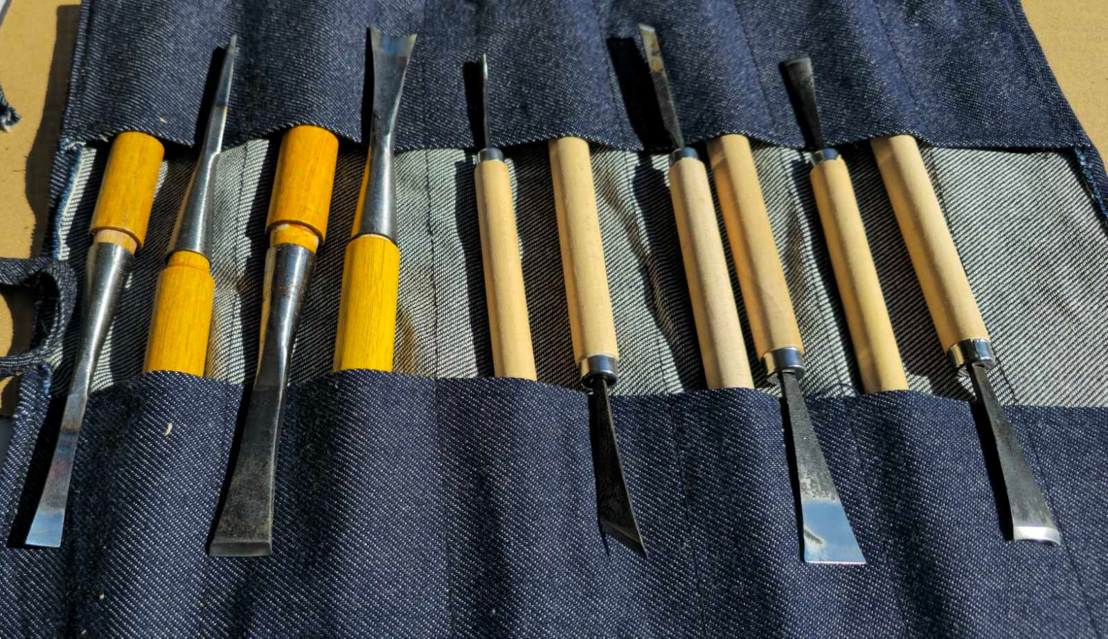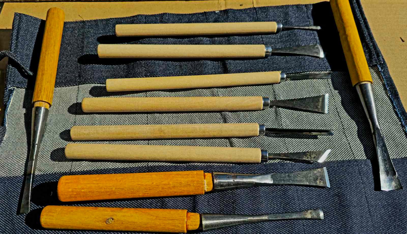 Kokybiškas 10 vnt. japoniško stiliaus kaltų rinkinys, sukurtas preciziniam ir įvairiapusiam darbui su medžiaga.