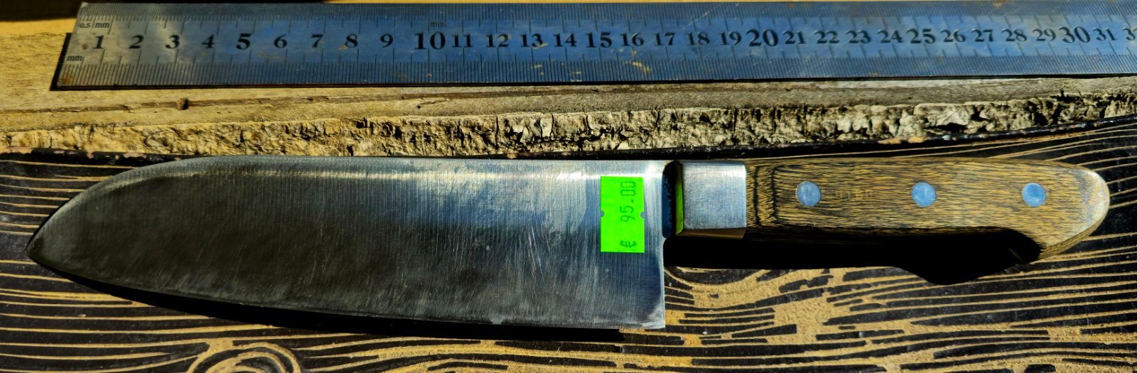 Plienas: Tikėtina – dvisluoksnis anglinis arba semi-stainless plienas (klasikinis japoniškas pjūvis)