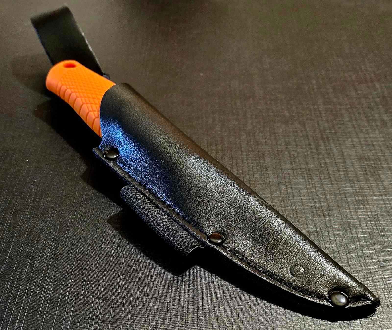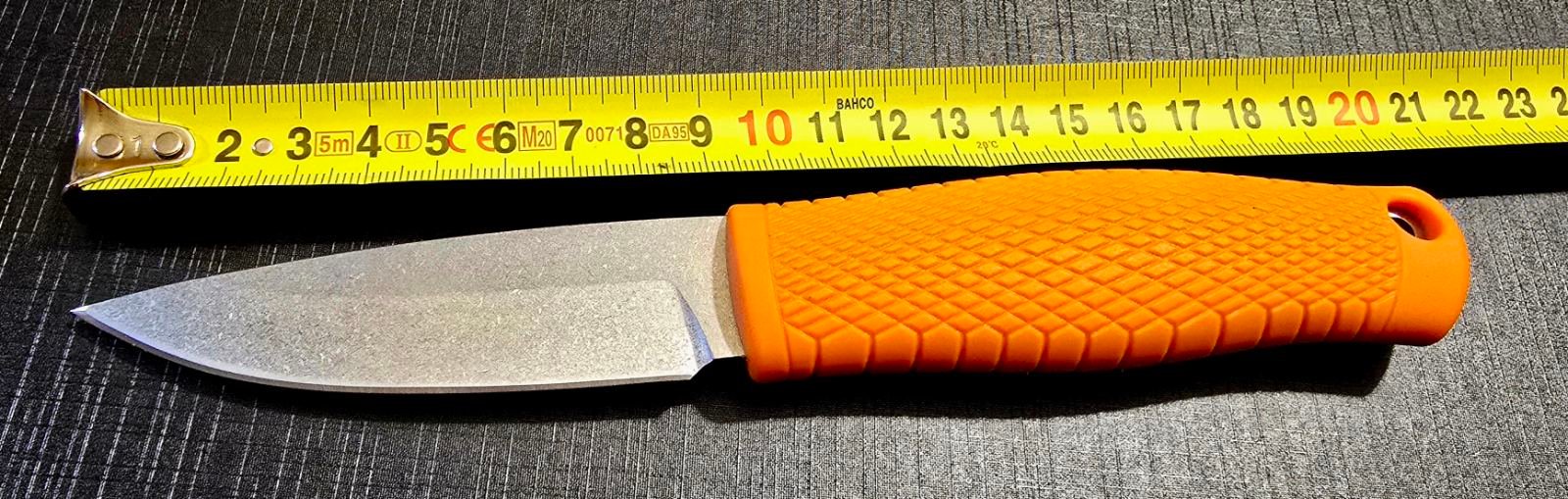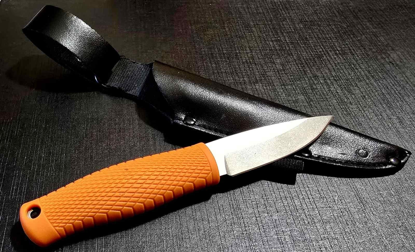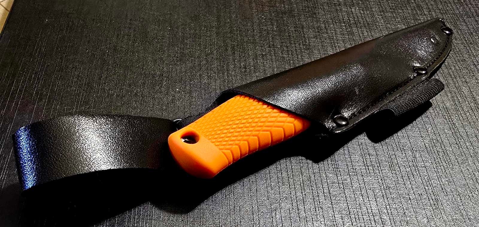 Ryški oranžinė spalva leidžia greitai rasti peilį bet kokiomis sąlygomis. Gili tekstūra užtikrina stabilų sukibimą – ranka neslysta net šlapia ar dirbant su pirštinėmis.