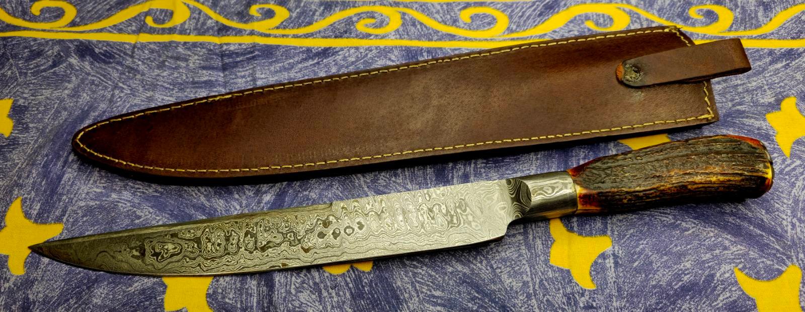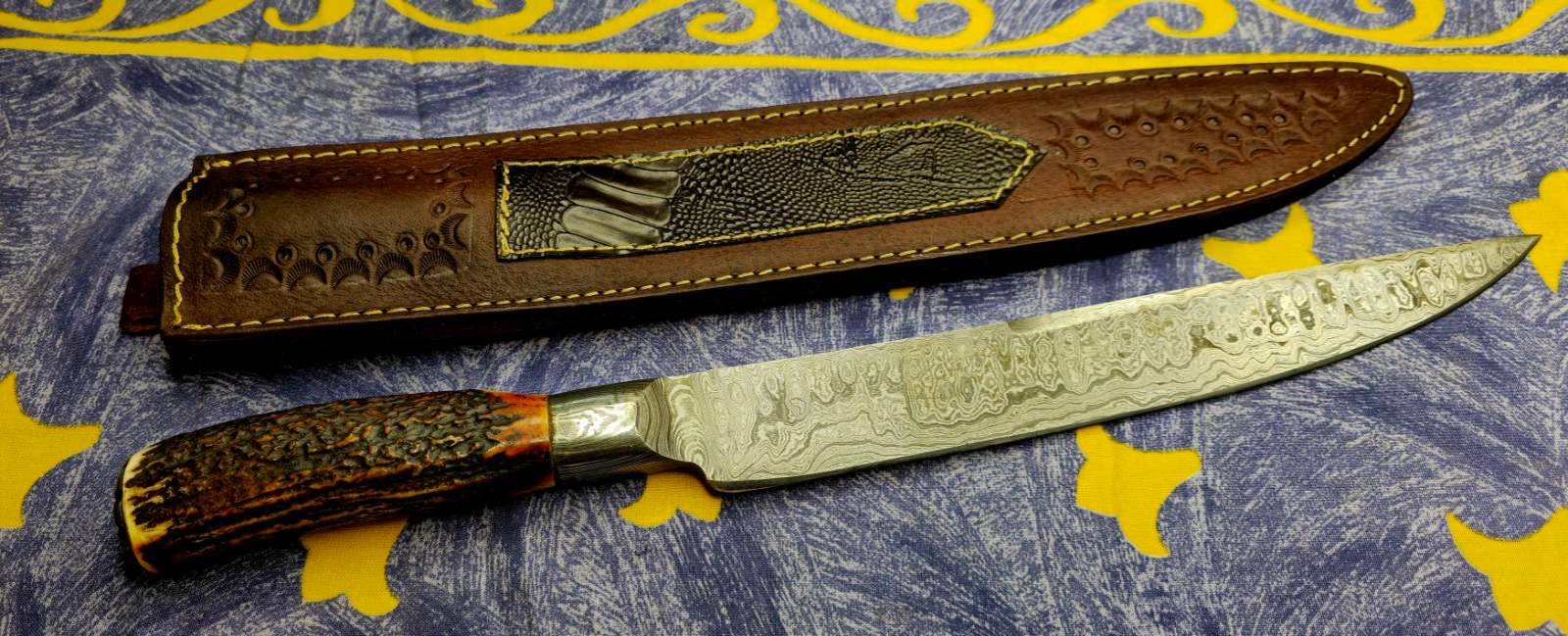 Šis išskirtinis peilis pagamintas iš daugiasluoksnio anglinio damaskinio plieno, kuris garsėja savo tvirtumu, aštrumu ir unikaliu raštu.
